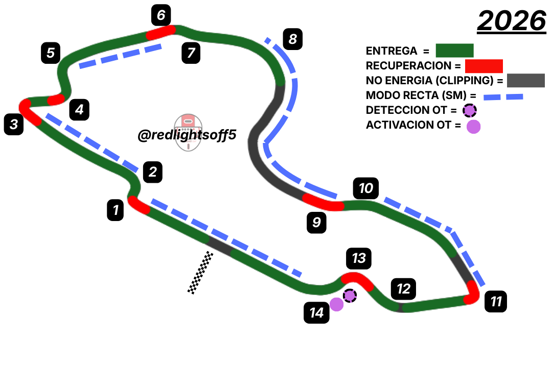 En 2026, debido al aumento en la potencia eléctrica, el consumo energético también aumenta considerablemente. Si los equipos despliegan la potencia máxima durante toda la vuelta, la batería puede descargarse antes de completar las rectas principales.