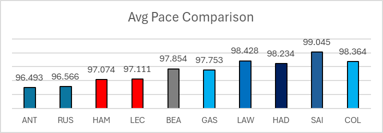 Hamilton y Leclerc fueron consistentes, pero aproximadamente medio segundo por vuelta más lentos que Mercedes.